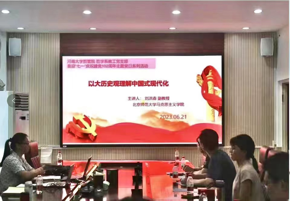 以科学理论探究现代化内涵。北京师范大学马克思主义学院刘洪森副教授作了题为《以大历史观理解中国式现代化》的辅导报告。刘洪森详细地介绍了从近代到党的二十大以来“现代化”具体内涵在中国的转变与发展。他表示,中国式现代化道路摒弃了西方以资本为中心的现代化、两极分化的现代化、物质主义膨胀的现代化、对外扩张掠夺的现代化,是一个被动向主动的过程,拓展了人类走向现代化的新途径。
