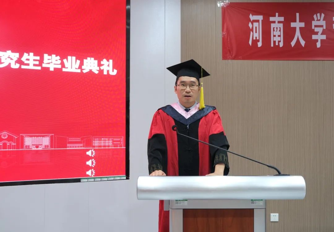 学院党委书记党鸿军向2023届毕业生表示热烈的祝贺并提出四点希望,与同学们共勉:第一,希望同学们融入时代洪流,做担当奉献者。积极传承河大精神、哲管精神,激发强国有我的青春激情,积极投身中国式现代化建设,在民族复兴伟业中勇当先锋队、突击队,展现青春的朝气、锐气。第二,希望同学们拥抱时代变化,做积极创新者。鼓励同学们敢于打破传统思维,主动拥抱变化,立足新环境,研究新情况,解决新问题,在不断突破中撰写个人发展的“创新点”。第三,希望同学们无惧困难挑战,做勇敢追光者。发扬论文写作精神,学会把挫折当作一种人生的考验,在挑战中前行,在困难中崛起,在奋斗中成长,成为勇于追光之人。第四,希望同学们保持个人定力,做久久为功者。懂得拒绝诱惑,能够坚守初心,以绣花般的细心、耐心、巧心,狠下功夫,刻苦钻研,实现自我的高质量发展。