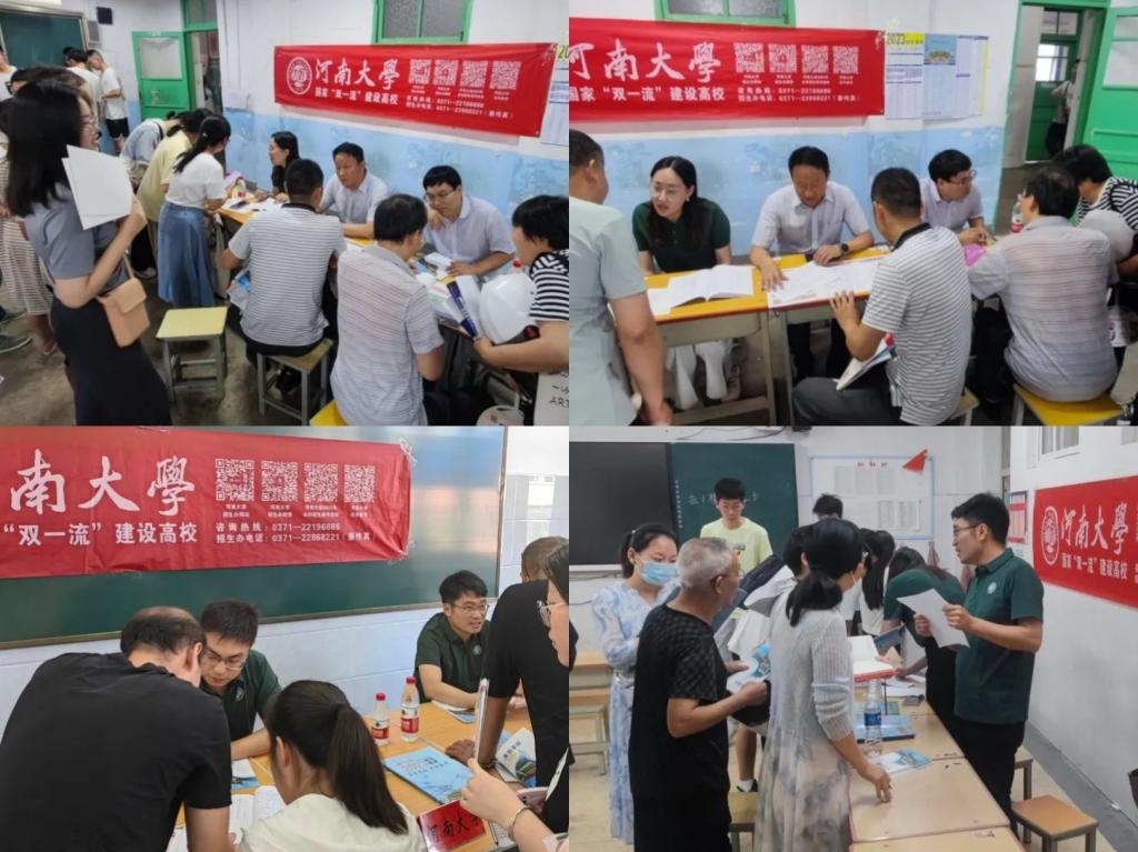 签约仪式后,招生宣传组成员在洛阳市孟津区第一高级中学等三所高中开展招生宣传活动。在咨询会现场,我校宣传展台气氛热烈,吸引了众多考生和家长驻足。团队成员围绕学校历史沿革、招生信息、学科专业特色和未来发展前景等内容展开宣讲,“零距离”为考生和家长带来我校最新高考招生资讯,“面对面”为考生和家长提供志愿填报咨询服务。