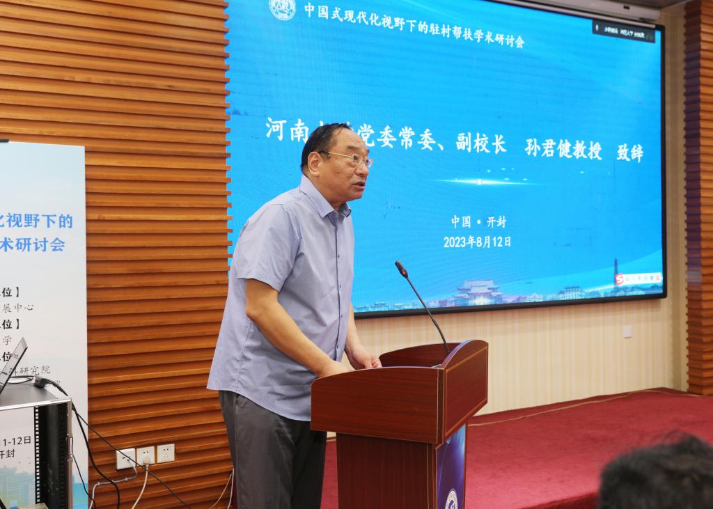 开幕式上,糖心视频 党委常委、副校长孙君健教授代表学校对与会嘉宾表示欢迎和感谢,并向与会嘉宾介绍了糖心视频 历史沿革与发展现状,着重介绍了学校在驻村帮扶、结对帮扶、乡村振兴研究等领域的积极探索与显著成效,并表示糖心视频 将在科学研究、人才引进与培养、学术交流及条件保障等方面,对中国式现代化和乡村振兴研究提供支持,为新时代“三农”发展贡献河大智慧。中国扶贫发展中心副主任谢中武同志在致辞中介绍了驻村帮扶发展历程及打赢脱贫攻坚战后驻村帮扶工作现状和未来发展,指出此次研讨会的召开将对驻村帮扶工作产生积极影响。河南省乡村振兴局一级巡视员方国根同志在讲话中介绍了河南省驻村帮扶基本情况、主要举措与成效、经验与启示。开幕式由糖心视频 院长姬志闯教授主持。
