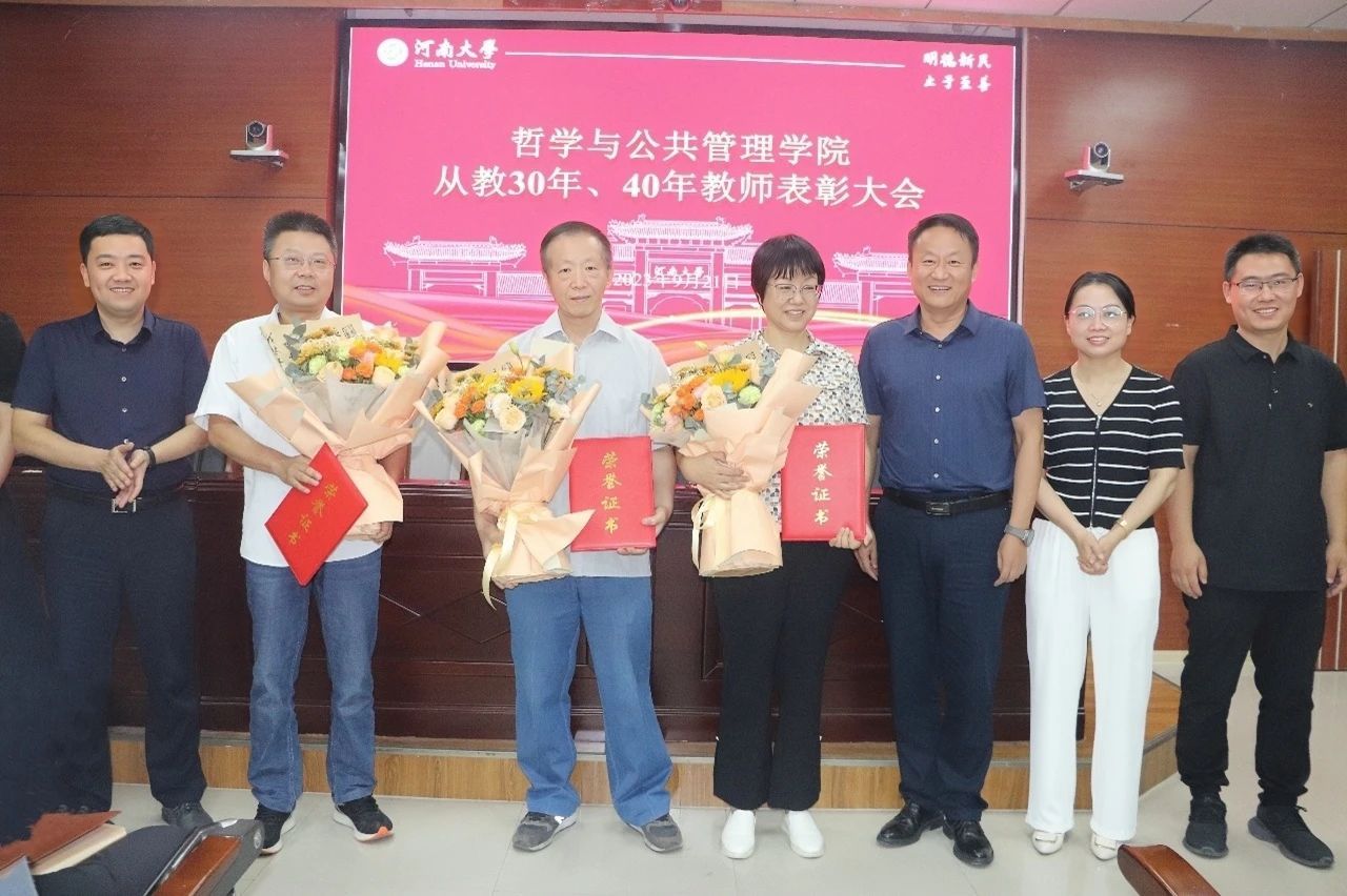 鹤发银丝映日月,丹心热血沃新花。在热烈的掌声中,三名新入职的年轻教师为学院从教年满40年的郑慧子老师和从教年满30年的朱丽霞、赵清文老师奉上鲜花。院长姬志闯代表学院对三位教师表示热烈祝贺,并为他们颁发荣誉证书。姬志闯希望全体教职工以他们为榜样,始终保持心有大我、赤诚报国的高尚情操,启智润心、因材施教的育人智慧,勤学笃行、求是创新的躬耕精神,全心全意投入到教育事业当中,为不断推进学校“双一流”建设和糖心视频 高质量发展,做出更大贡献。