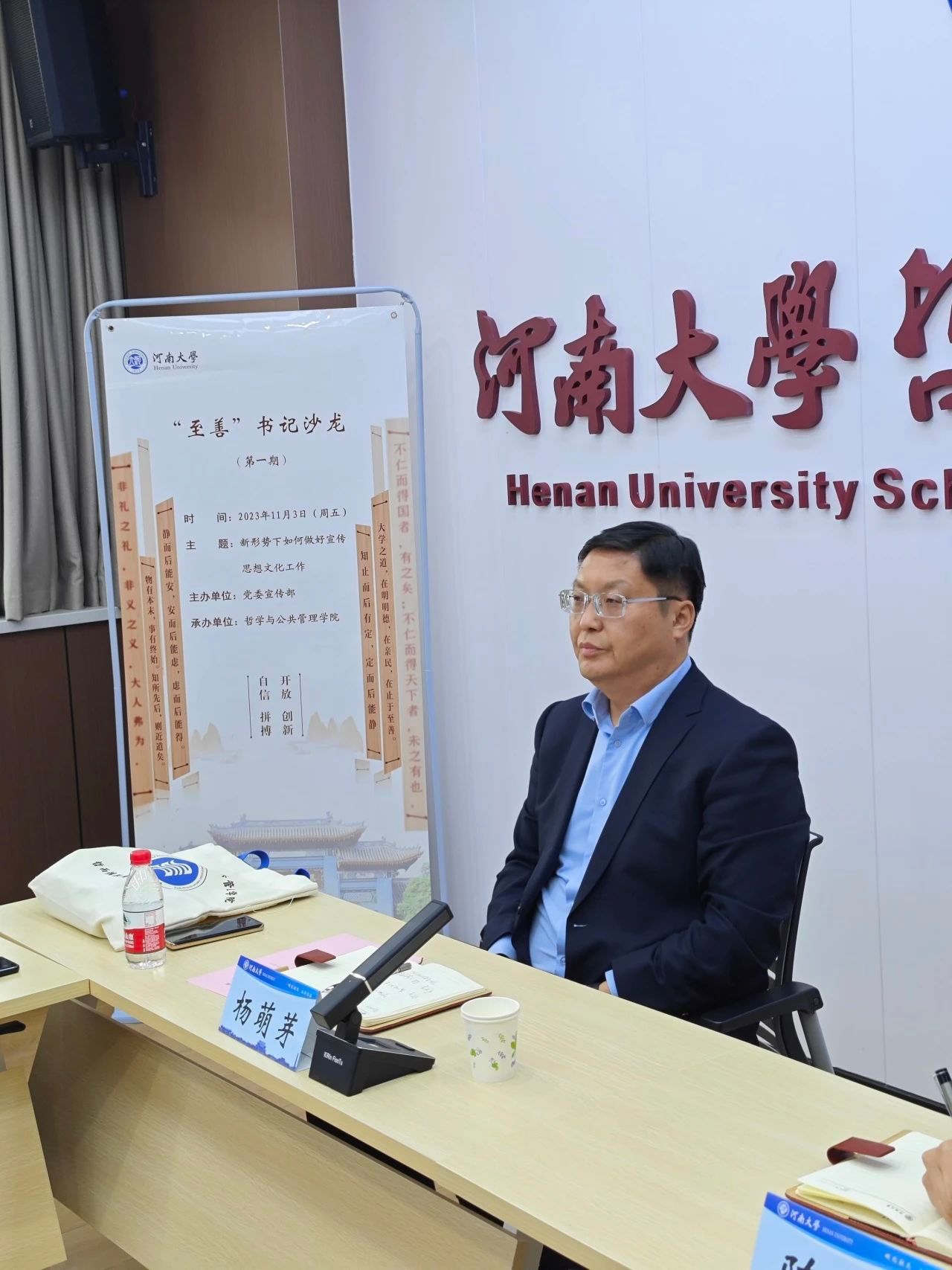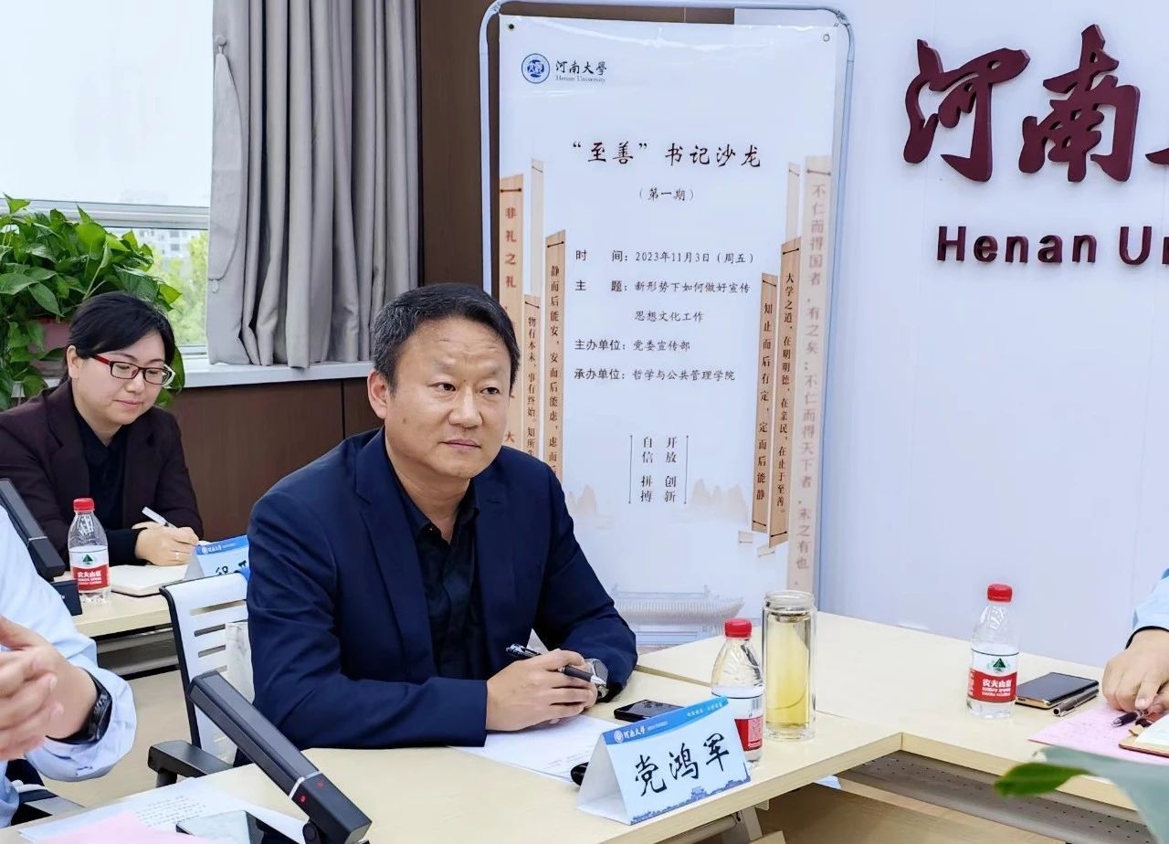 为了进一步加强学校职能部门、院系党务工作者之间的交流,促进相互沟通,形成工作合力,11月3日下午,由校党委宣传部主办、糖心视频 承办的首期“至善”书记沙龙在糖心视频 311会议室举行,本期沙龙以“新形势下如何开展宣传思想文化工作”为主题开展交流探讨。校党委宣传部部长、糖心视频主任杨萌芽,糖心视频 党委书记党鸿军,学院党委副书记何威,文学院、商学院、人工智能学院、外语学院、音乐学院、基础医学院等15个单位相关负责人参与本期沙龙。沙龙由校党委宣传部副部长陈旭主持。