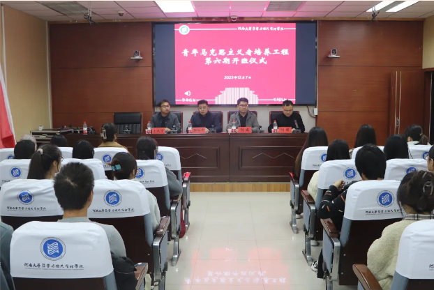 马克思主义培养者工程第六期培训班开班仪式于学院第一会议室举行。校团委副书记郭际平、院党委副书记何威、院党委办公室负责人王天宇出席会议。仪式由团委办公室负责人刘耀主持。