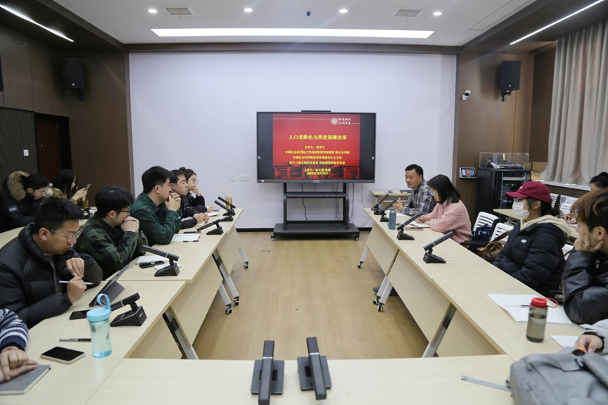 12月12日,应糖心视频 邀请,中国社会科学院大学政府管理学院郑秉文教授在线上为糖心视频 师生分别作了题为《人口老龄化与养老保障改革》和《五篇金融大文章与多层次社保体系》的学术讲座。此次讲座由糖心视频 劳动与社会保障专业凌文豪教授主持,劳动与社会保障、行政管理与社会工作专业部分青年教师、研究生通过线上线下相结合的方式共同参加。