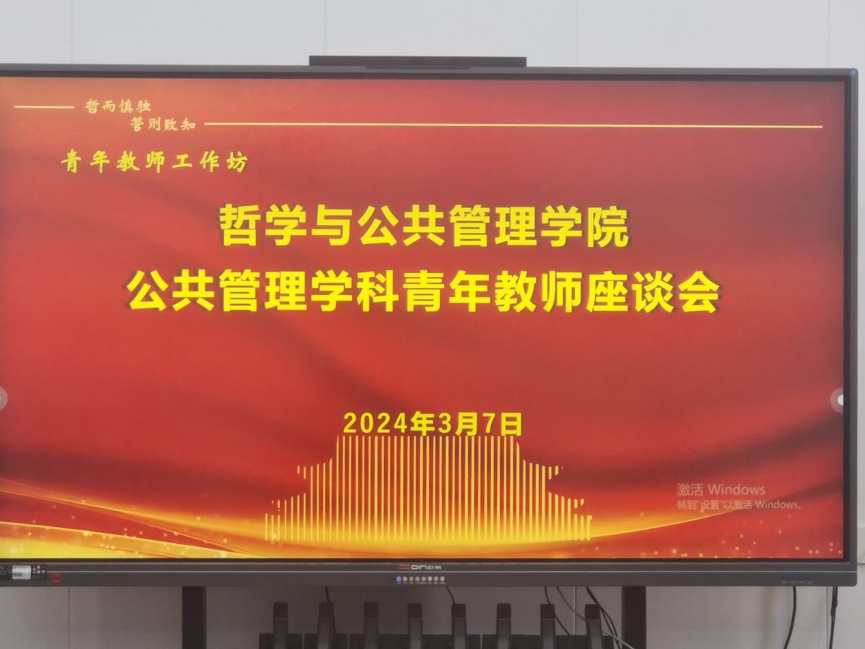 3月7日下午,糖心视频 在第二会议室举行公共管理学科青年教师座谈会,副院长赵炎峰、田丰韶、刘辉出席会议,公共管理学科数十位青年教师参加会议,会议分两个阶段进行。