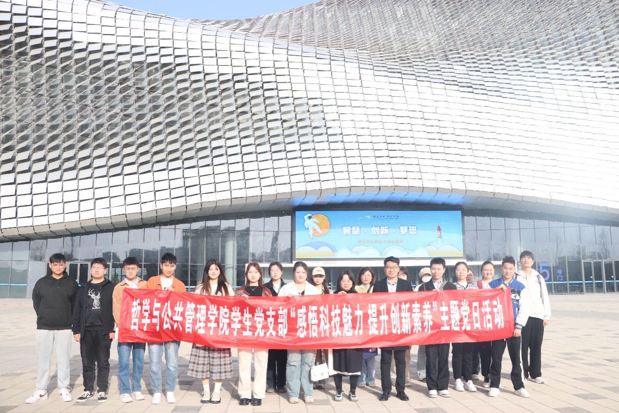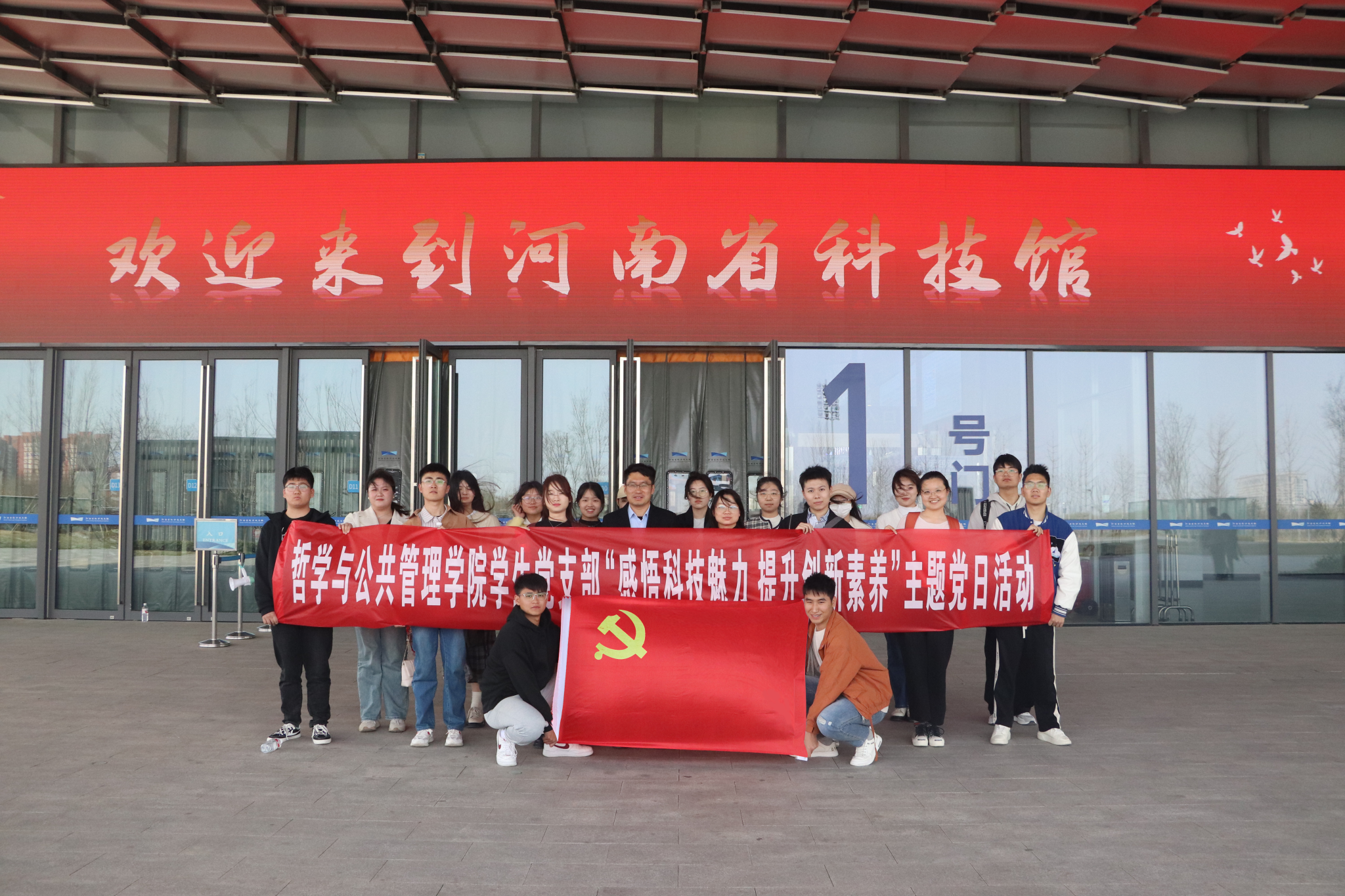 行政管理本科第一党支部、社保本科党支部联合研究生哲学党支部前往河南省科技馆开展“感悟科技魅力,提升创新素养”主题党日活动,学院党委副书记何威、本科2021级辅导员张亚玲和20余名学生党员参加。