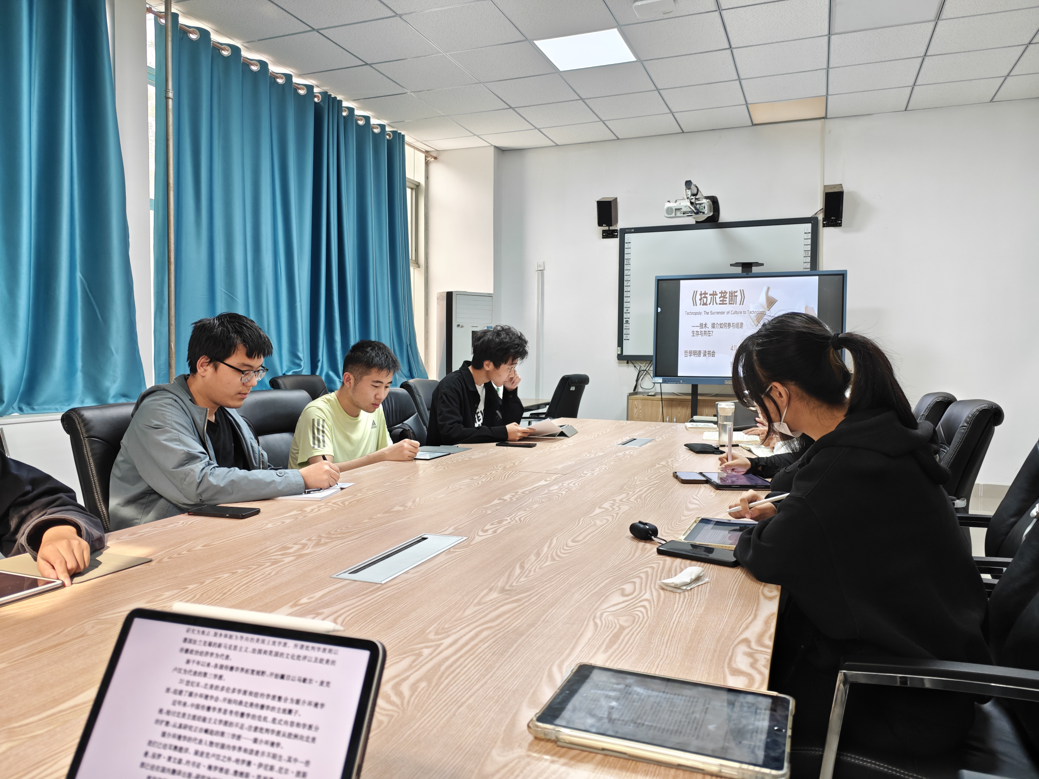 读书会伊始,秦英姿同学简要介绍了与会人员,交代了《技术垄断—文化向技术投降》一书的相关背景。随后,刘维邦老师以“钟表”这一概念为引子,巧妙地将大家引入本次读书会的核心主题。在老师的引导下,同学们对“技术、媒介如何参与组建生存与共在”话题进行了深入的探讨。刘攀同学结合波兹曼对“技术垄断”的论述,对波兹曼的环境媒介学思想进行了阐释,并对其划分的三个文化阶段进行了独到的评述。金子益同学则从“人与技术的关系”出发,发表了独到的见解,并将话题延伸到了大众文化的讨论中。随着讨论的深入,同学们围绕“人的主体性”“权利话语体系”以及“技术媒介的转变”等核心问题展开了热烈的讨论。同学们结合自己的生活体验,将问题上升到哲学反思的高度,展现出深厚的哲学素养和敏锐的洞察力。