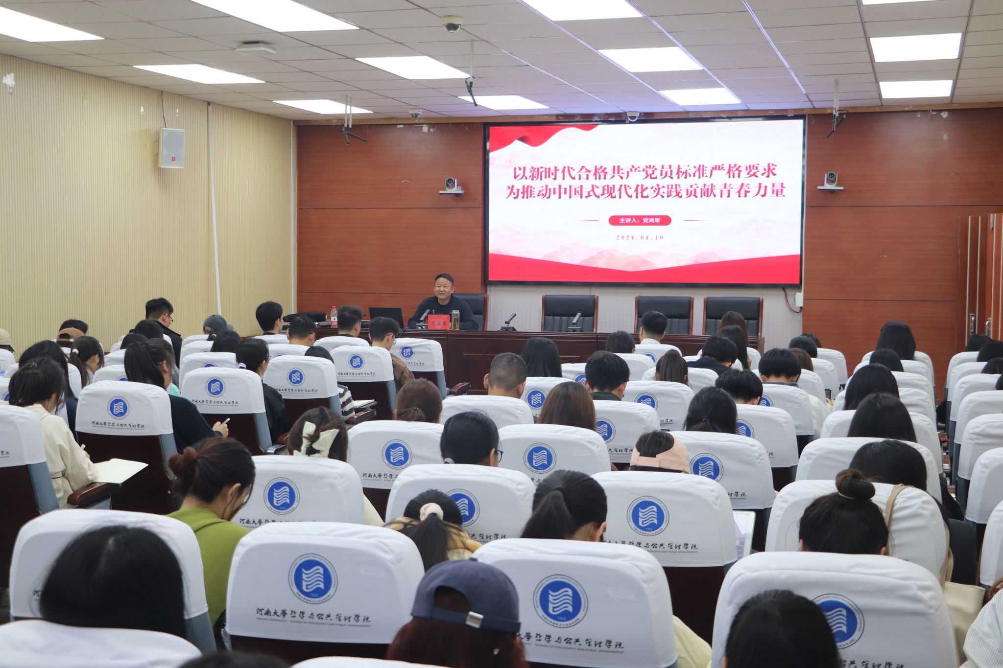 为加强对入党积极分子的培养教育,提高学生思想觉悟,坚定理想信念。4月10日下午,院党委书记党鸿军在学院第一会议室为入党积极分子讲授题为《以新时代合格共产党员标准严格要求 为推动中国式现代化实践贡献青春力量》主题党课,学院130名入党积极分子现场聆听。