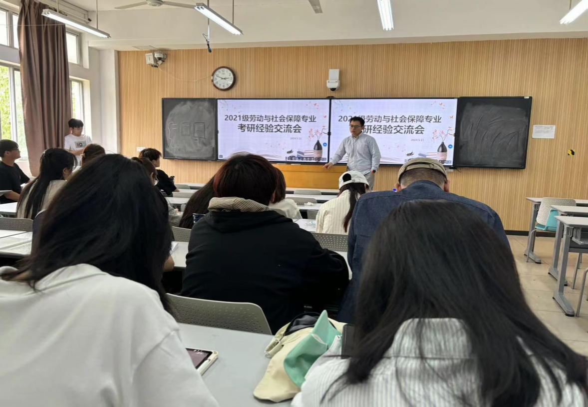 5月11日,为做好考研指导与服务工作,帮助学生指点迷津,明确备考目标与方向,提高备考效率,糖心视频 2021级劳动与社会保障专业本科生召开了考研经验交流会,特别邀请四位本科2020级优秀学生代表李明轩、晋玉鸽、赵艺哲、张敬祥作专题分享与解惑。劳动与社会保障系李强副教授应邀出席并对同学们提出要求与希望。