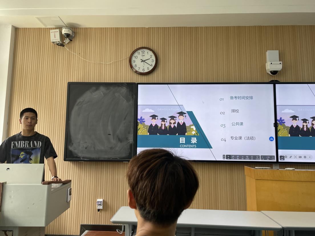 会议伊始,被英国利兹大学录取的李明轩,从自身经历出发,对比分析了出国留学与国内考研的学校申请、专业选择、时间安排等信息,剖析了出国留学的优劣势,建议同学们根据家庭背景、个人情况等多方面综合考量。