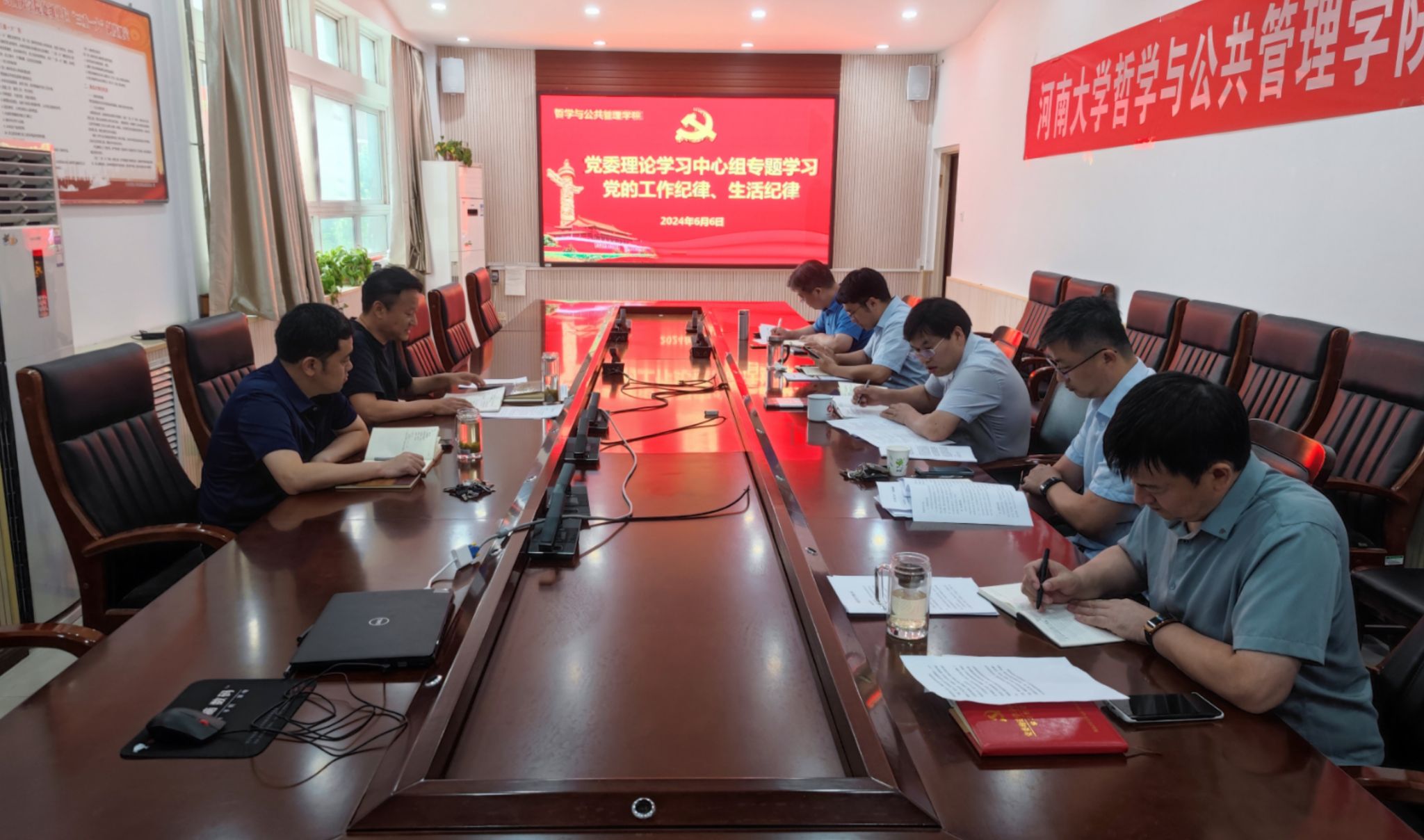 6月6日下午,学院党委理论学习中心组召开会议,专题学习党的工作纪律、生活纪律。学院全体党委委员参加会议,会议由学院党委书记党鸿军主持。