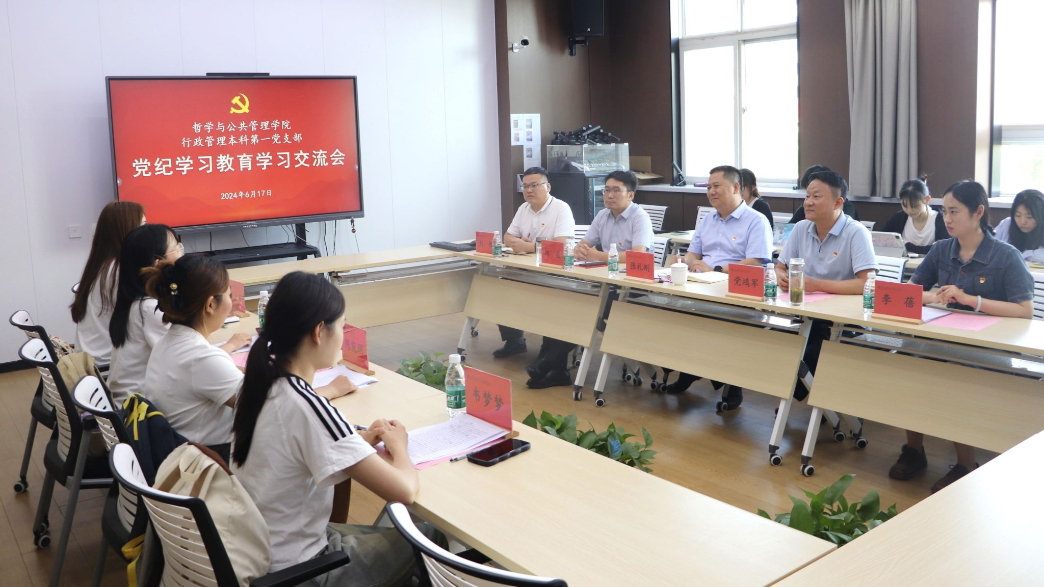 行政管理本科第一党支部在学院第二会议室召开党纪学习教育学习交流会,副校长张礼刚作为行政管理本科第一党支部联系校领导出席会议。学院党委书记党鸿军,学院党委副书记、行政管理本科第一党支部书记何威,学院团委负责人、哲学研究生党支部书记刘耀,本科2023级辅导员、行政管理本科第二党支部书记李蓓和行政管理本科第一党支部全体成员参加,会议由何威主持。