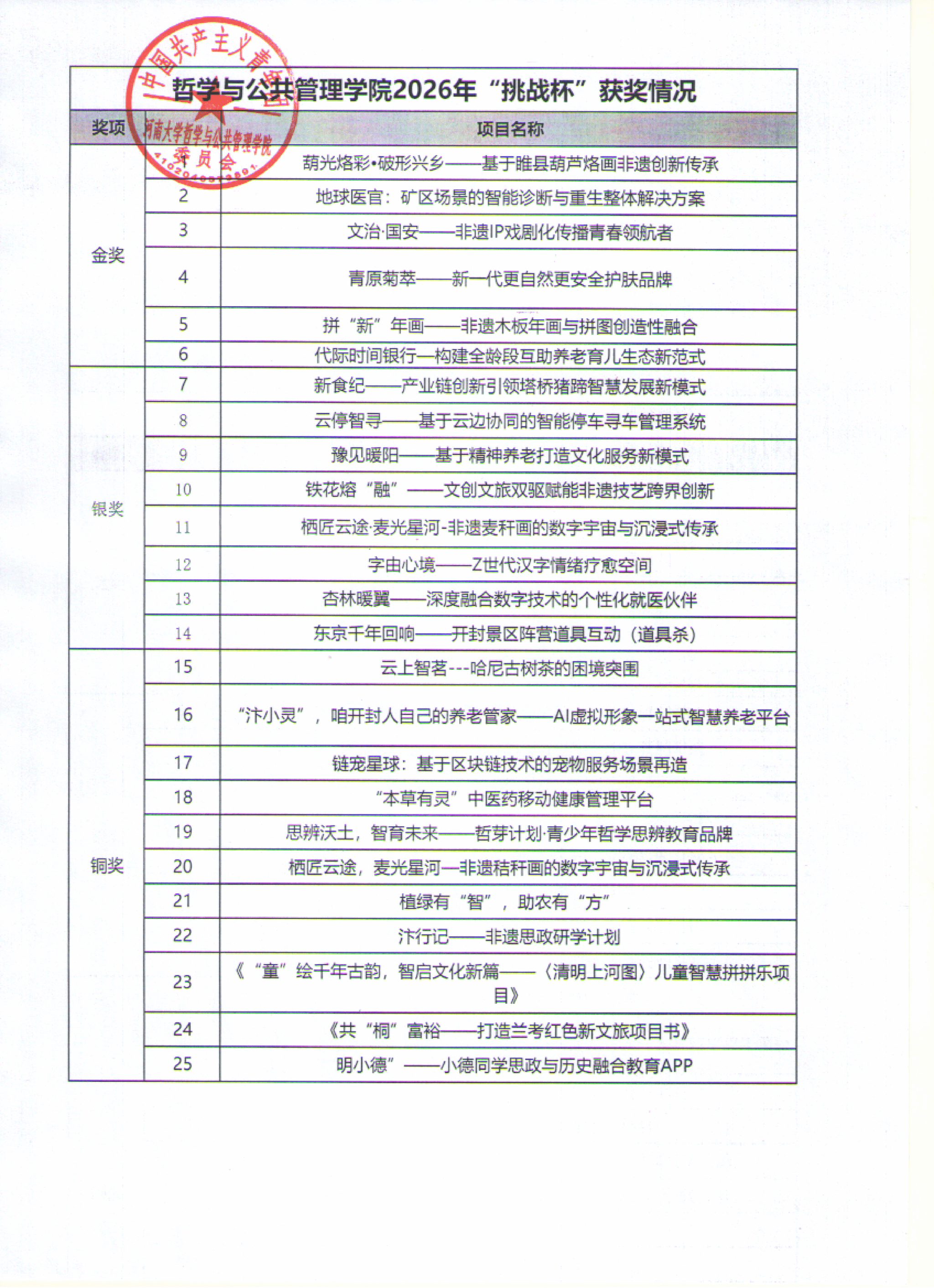 2026年“挑战杯”糖心视频 大学生创业计划竞赛结果