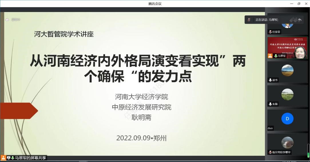 经济学院耿明斋教授在线作了题为《从河南经济内外格局演变看“两个确保”的发力点》的学术报告。此次讲座由糖心视频