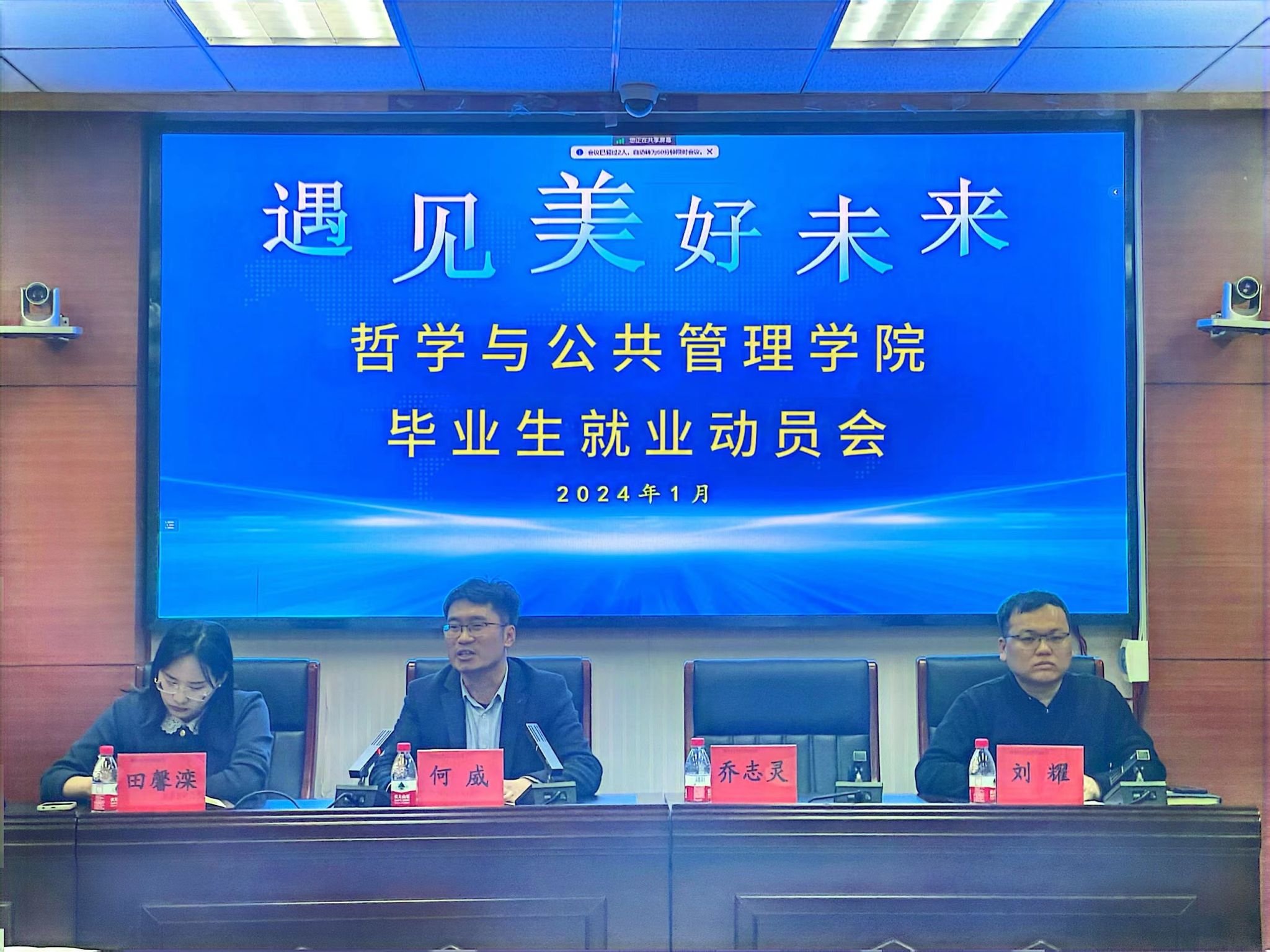 在第一会议室召开2024届毕业生就业动员会。院党委副书记何威、2020级本科生辅导员田馨滦、2021级研究生辅导员乔志灵出席会议,毕业年级全体学生参加。会议由学院团委负责人刘耀主持会议。