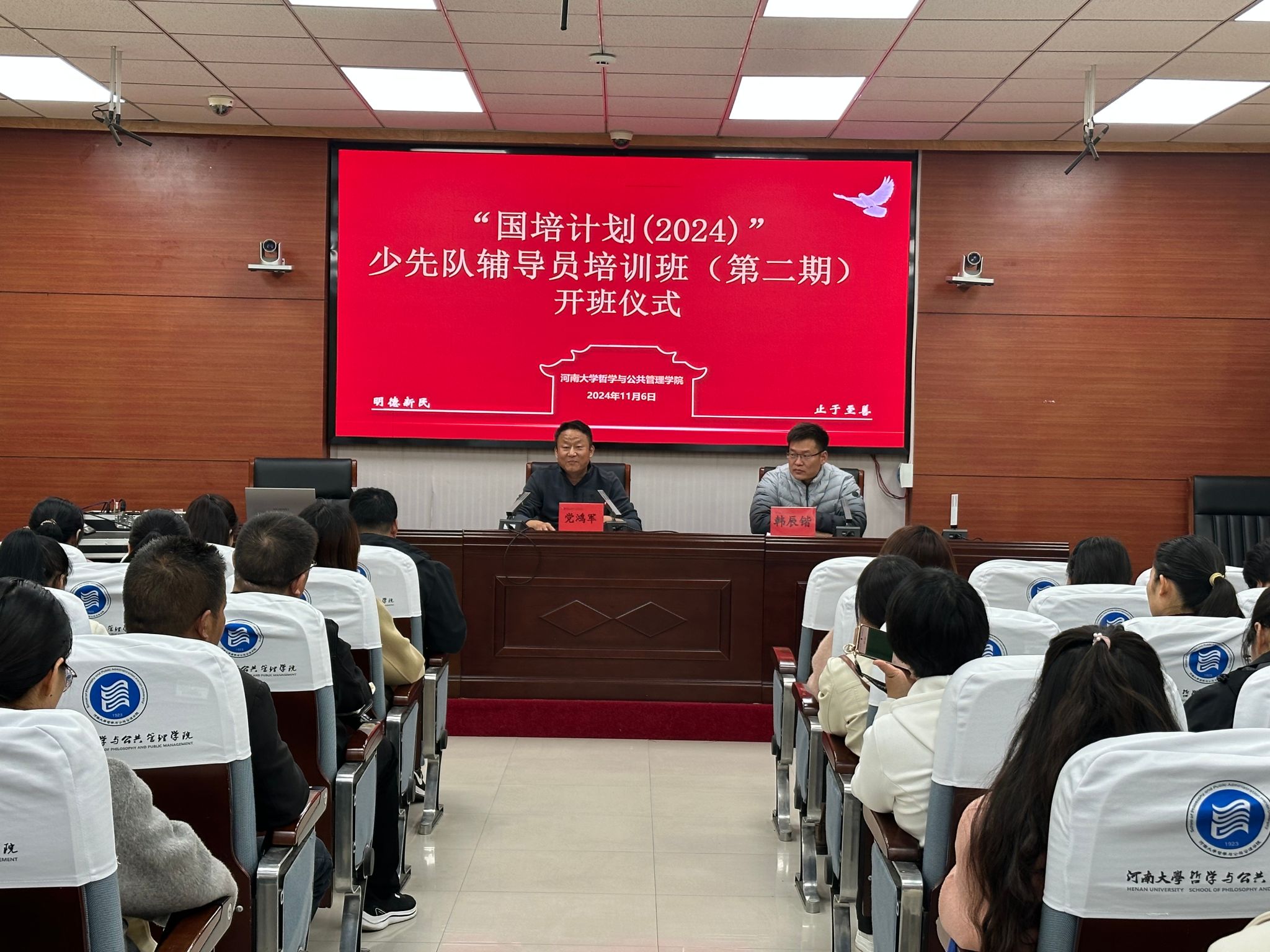 第一会议室举行。学院党委书记党鸿军、 继续教育与培训中心主任韩辰锴和来自河南南阳、洛阳、商丘、周口等地的102名少先队辅导员参加了开班仪式,仪式由韩辰锴主持。